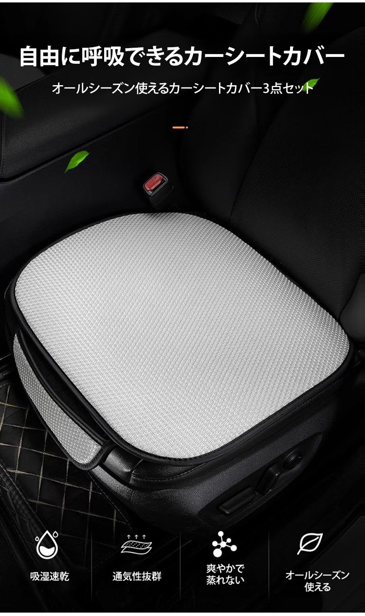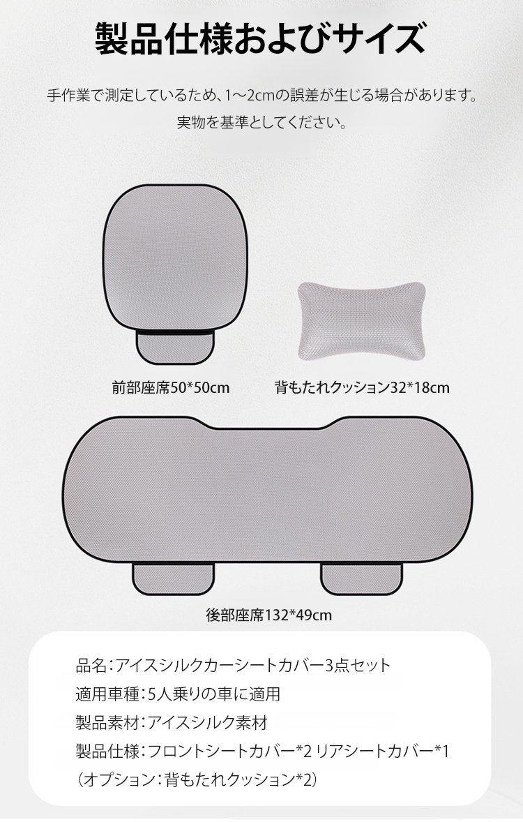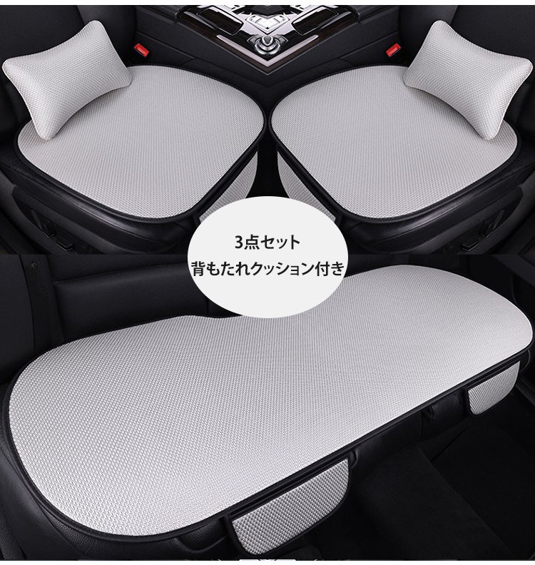 アイスシルクカーシートカバー3点セット(背もたれクッション付き)